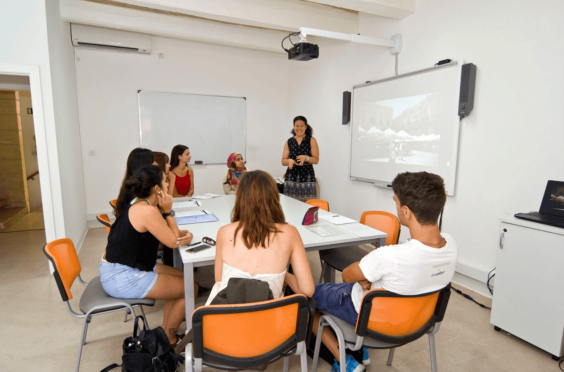 La scuola ti ospiterà in locali recentemente ristrutturati con vista panoramica sulla città dal suo terrazzo. Le classi sono formate da piccoli gruppi (massimo 8 studenti) per un insegnamento mirato.